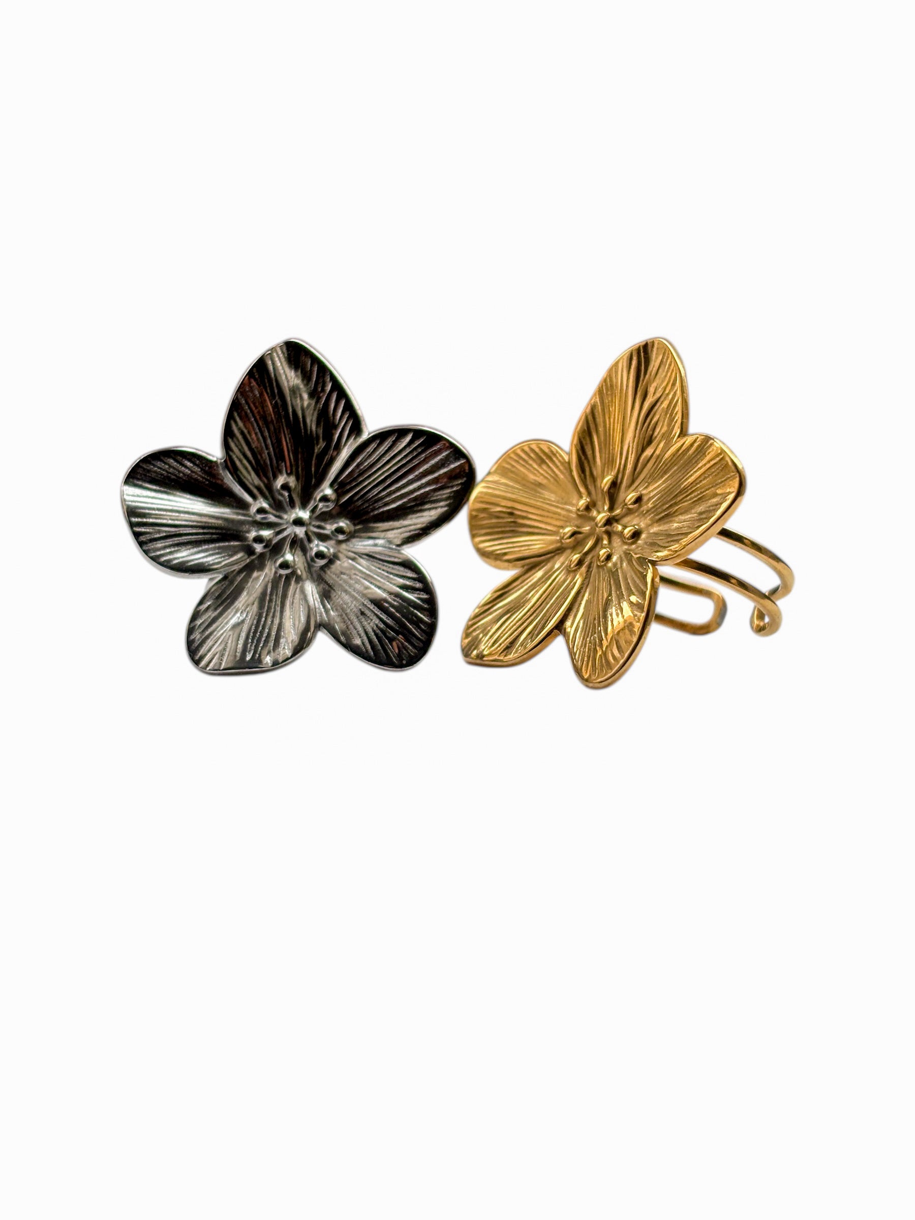 Bague fleur 30mm en acier inoxydable & Doré OR 18K