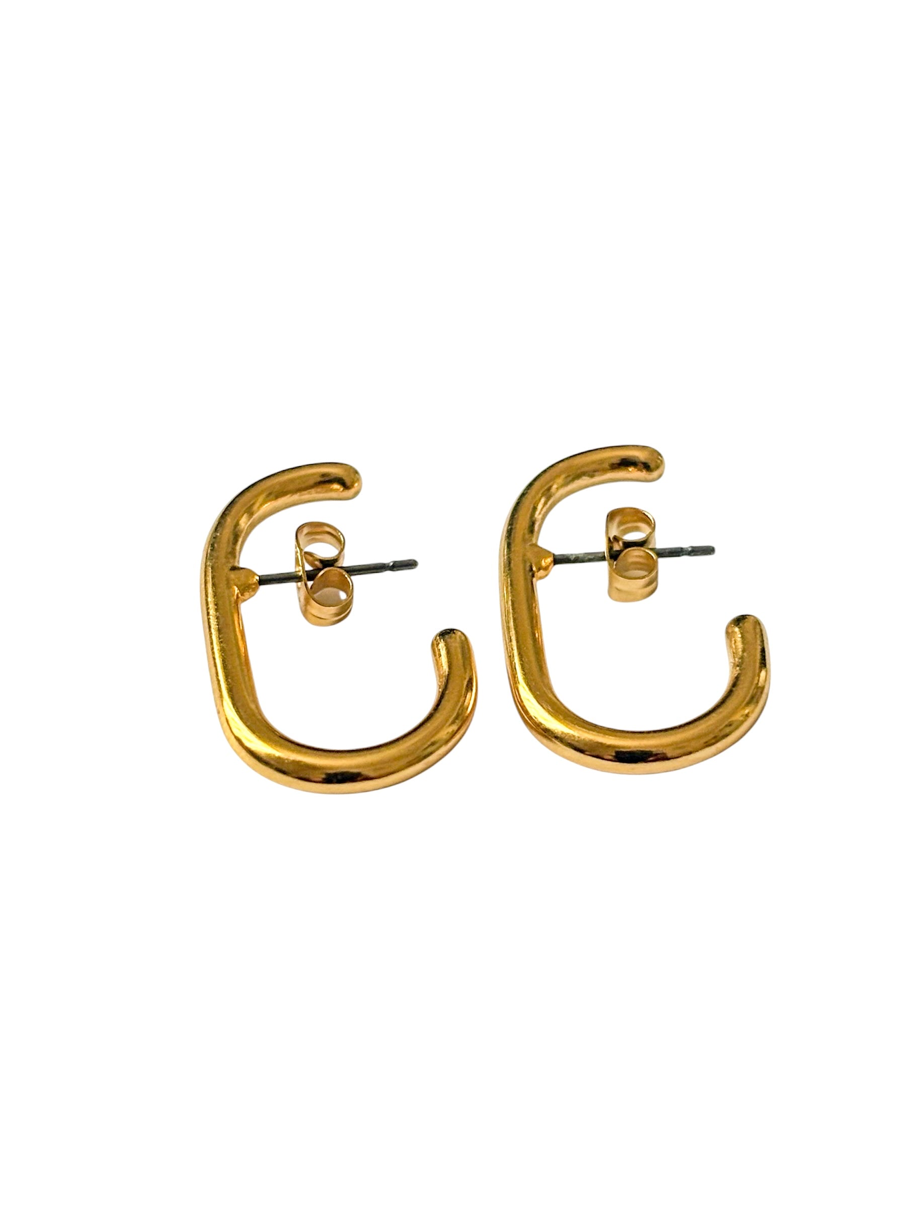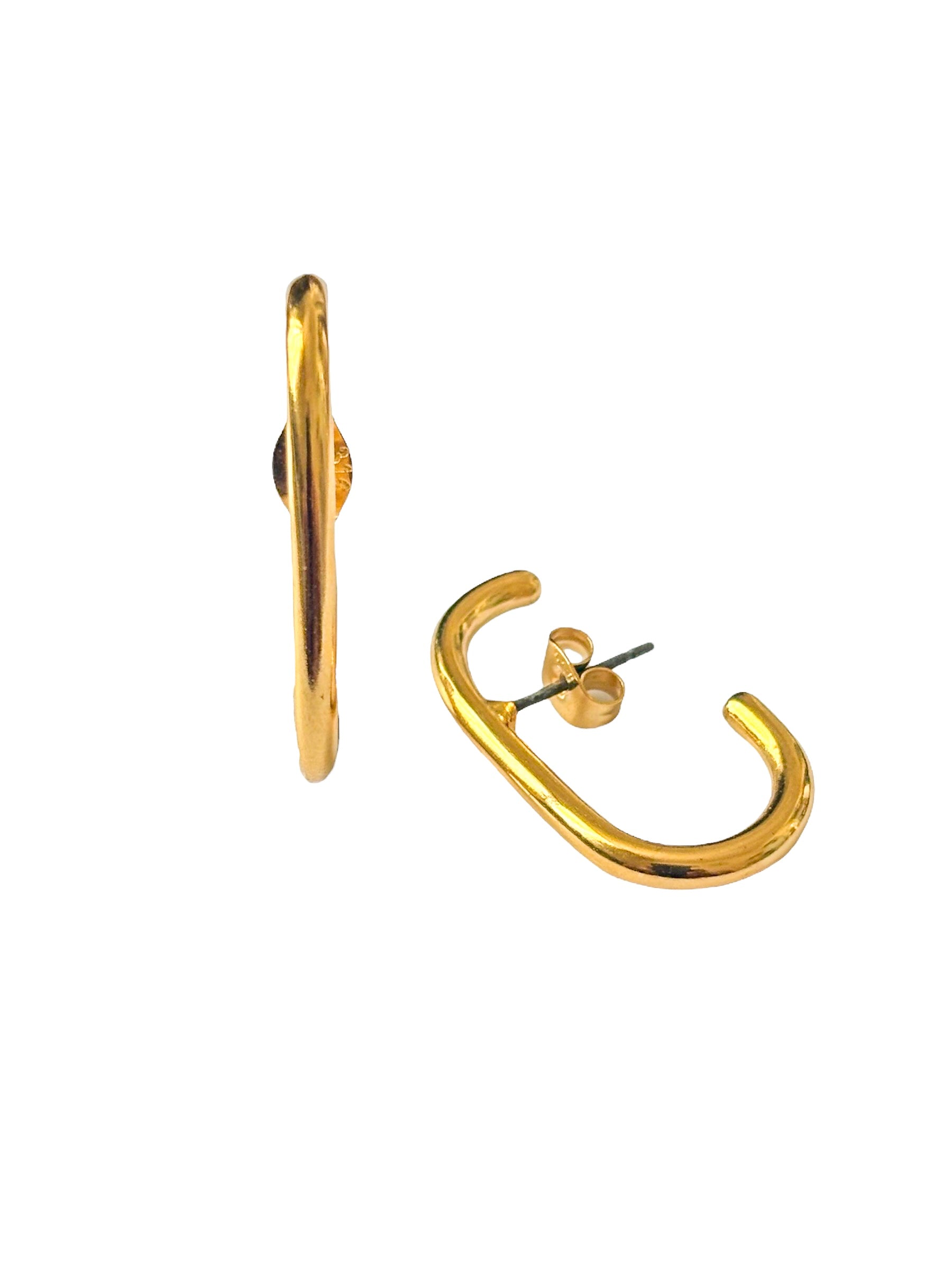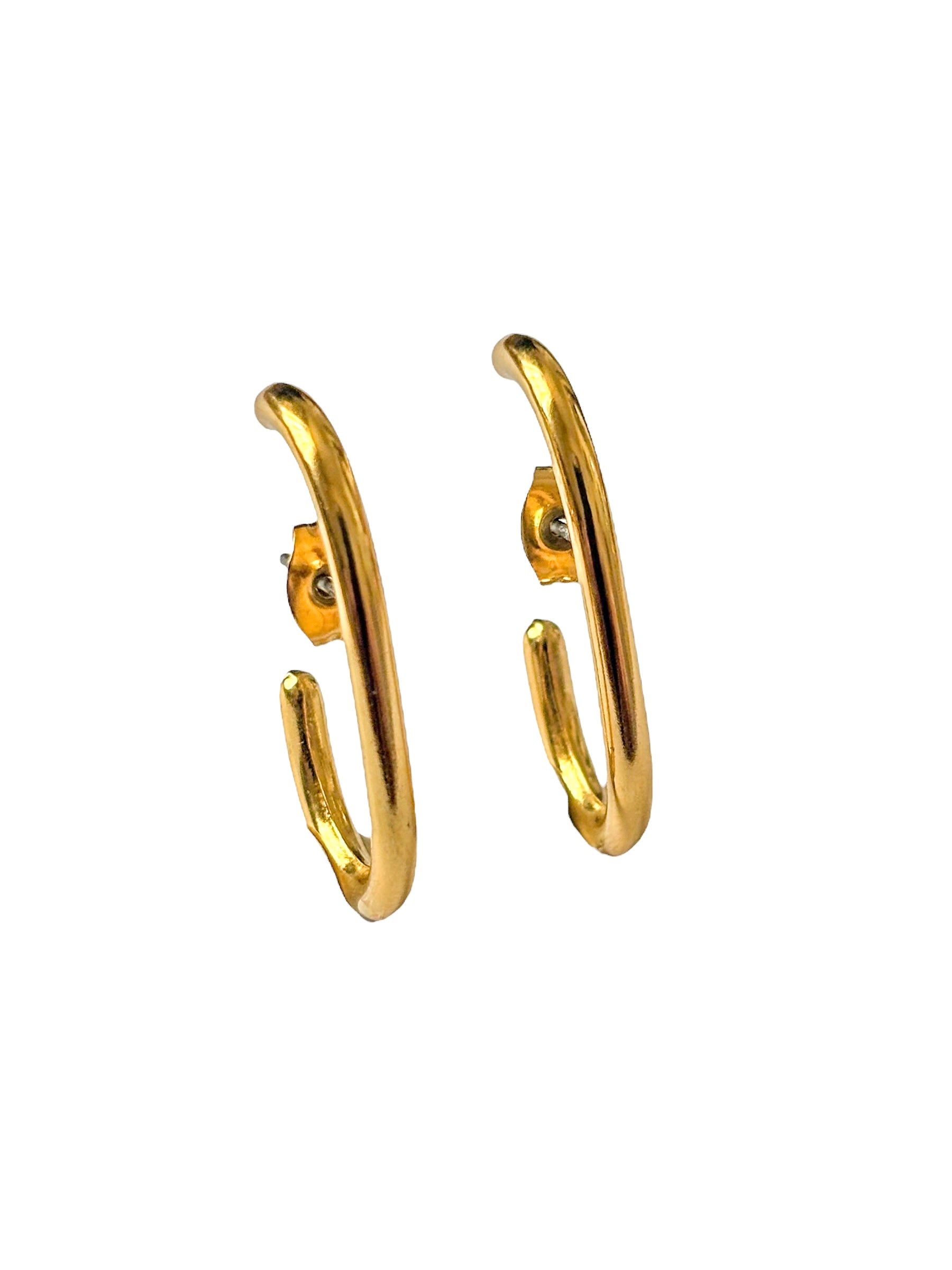 - Boucles d’oreilles barre arrondie design 28.5x15.5 en acier inoxydable & Doré OR 18K