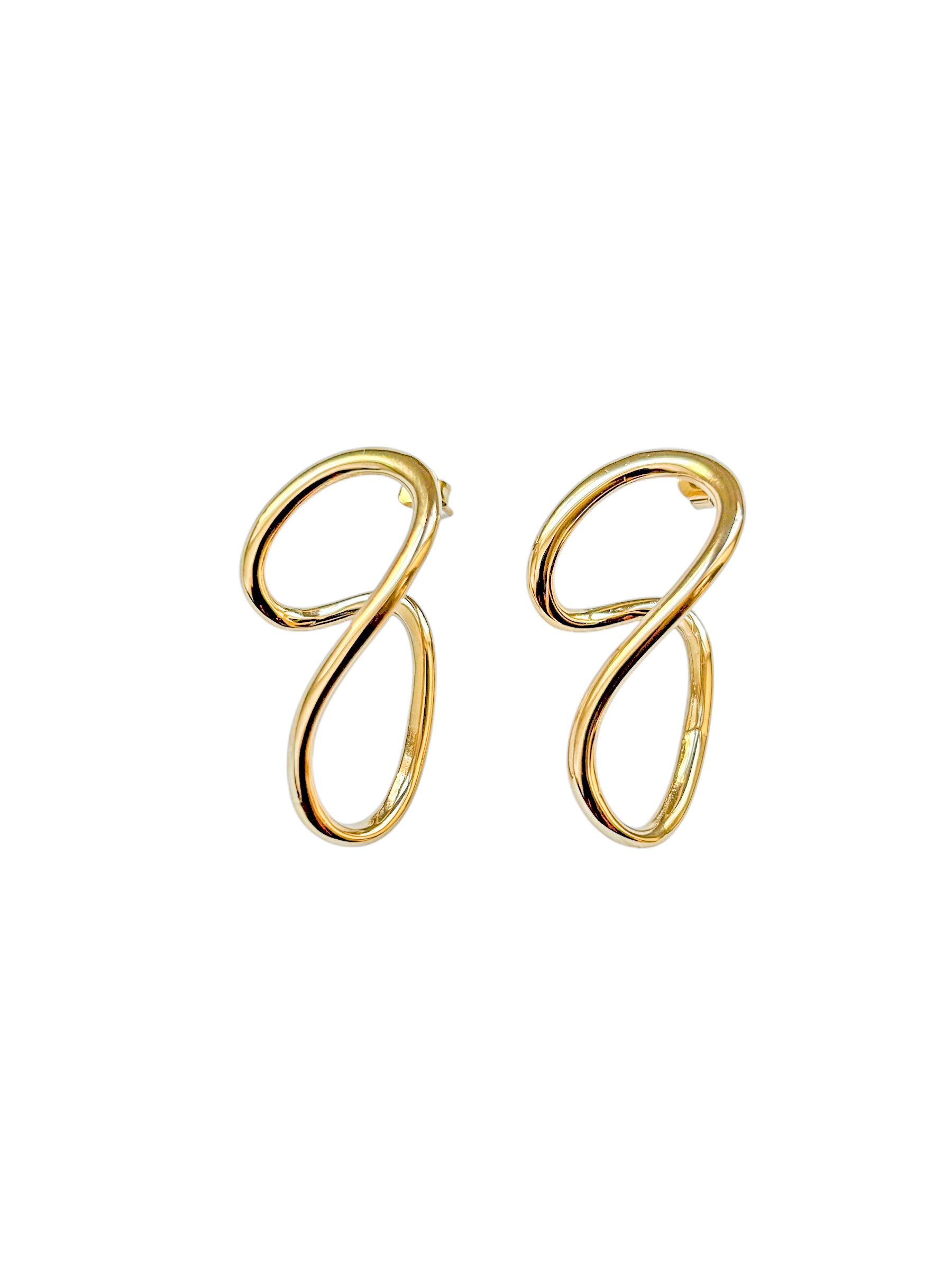 - Boucles d’oreilles style graphique 50mm en acier inoxydable & Doré OR 18K