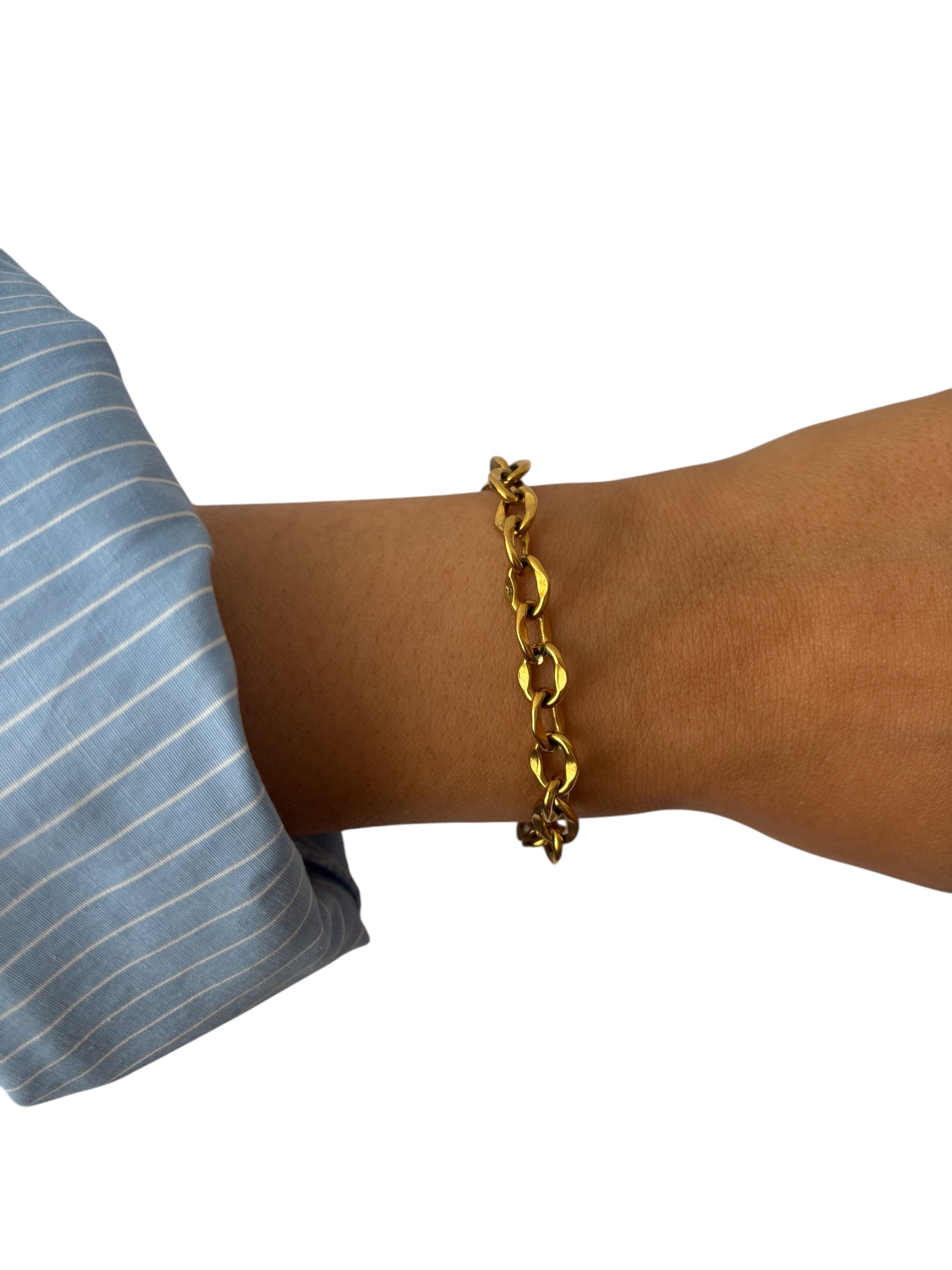 L'acier inoxydable doré à l'or fin, allie robustesse, éclat et durabilité. C'est un matériau que nous avons choisi pour sa capacité à traverser le temps sans perdre de sa beauté, même porté au quotidien.