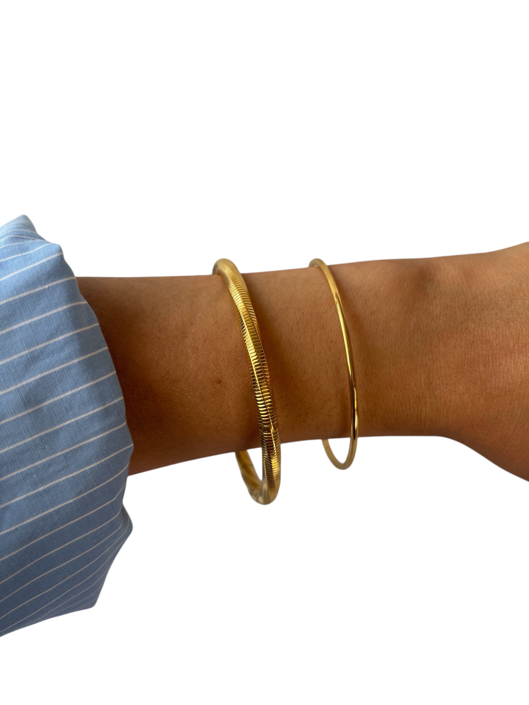 - Bracelet Jonc fin lisse en acier inoxydable & plaqué OR 18k