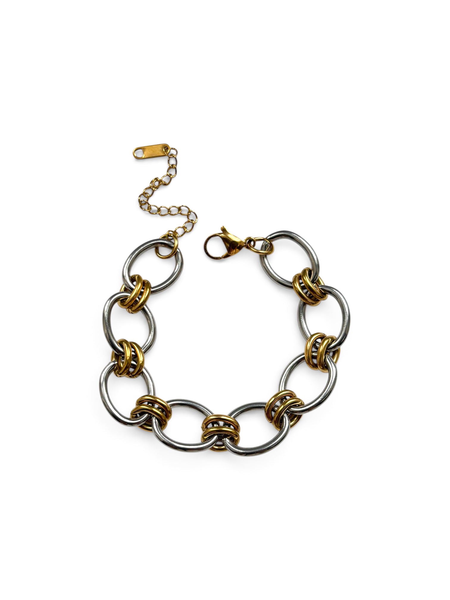 Audace dorée et élégance brute, un bijou qui affirme son style maximaliste. Tendance mix de matière doré et argenté.
