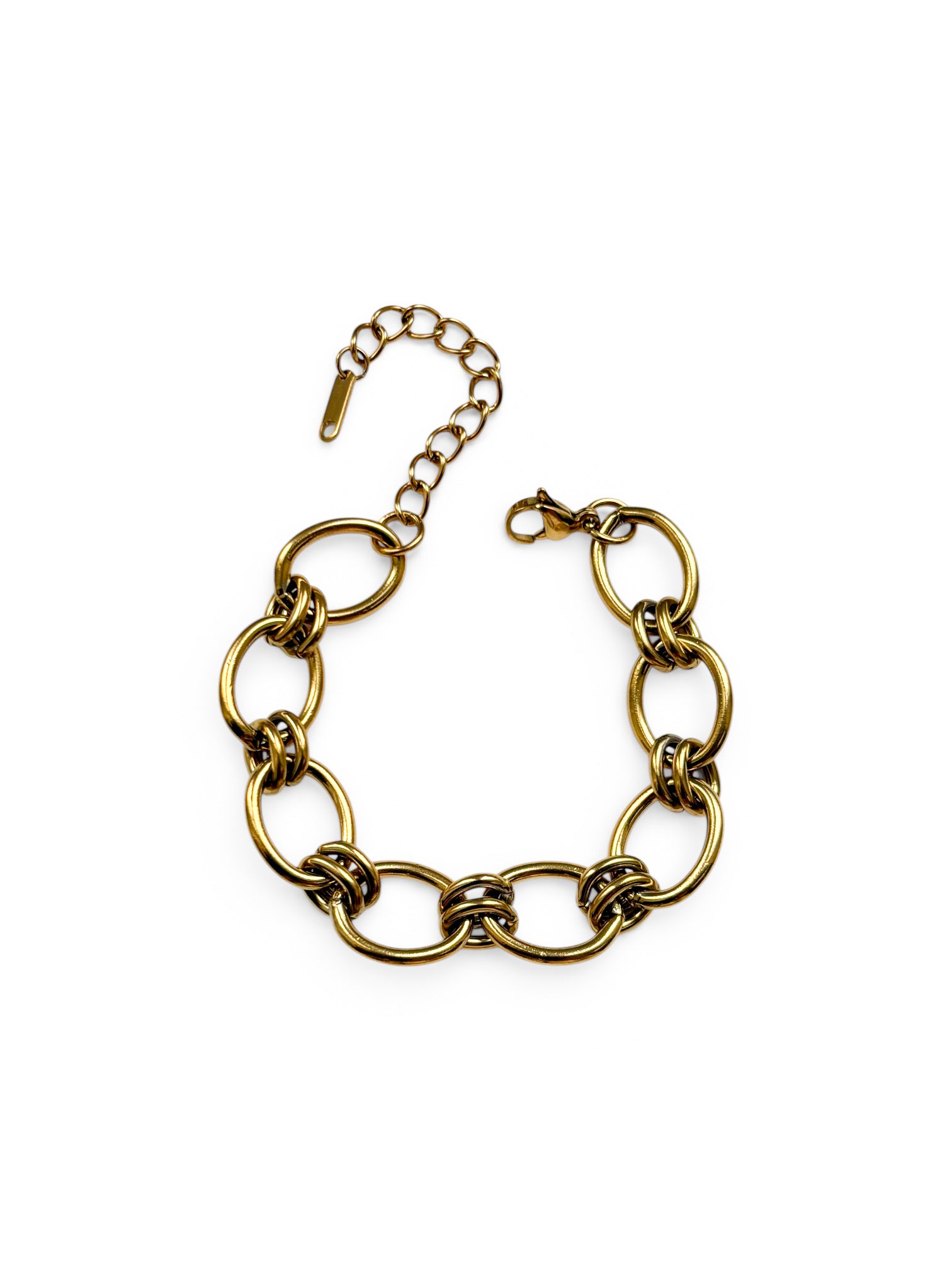 L'acier inoxydable doré à l'or fin, allie robustesse, éclat et durabilité. C'est un matériau que nous avons choisi pour sa capacité à traverser le temps sans perdre de sa beauté, même porté au quotidien.