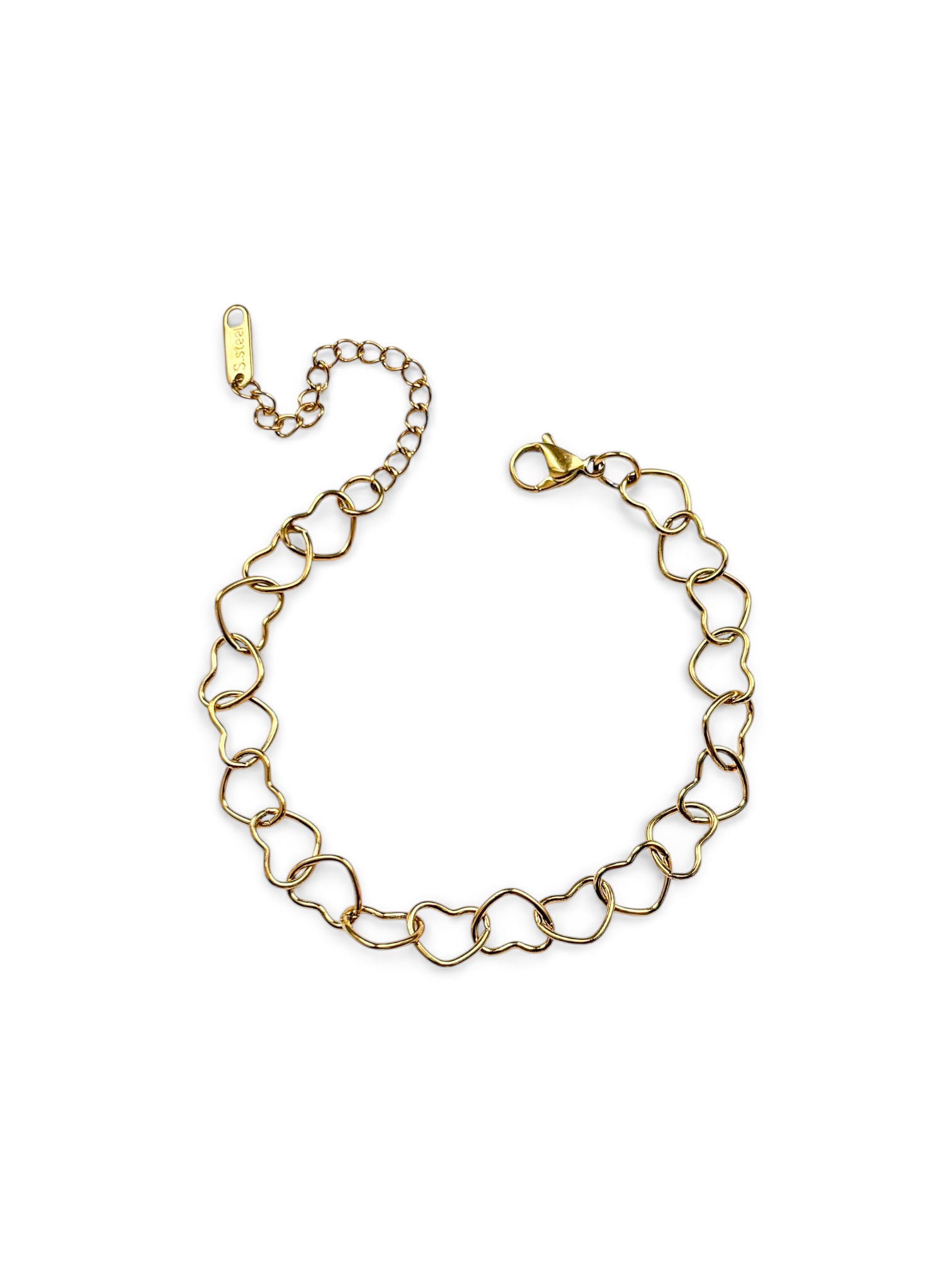 Bracelet Iconic love doré, style décontracté, élégant. En forme de cœurs entremêlés, signe d’amour ou d’amitié.