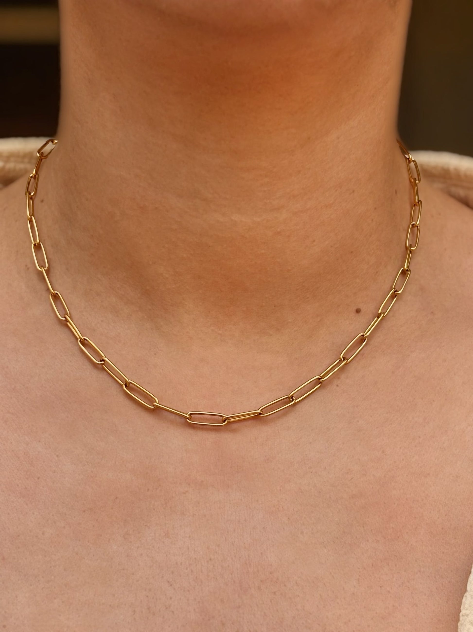 - Chaîne maille rectangle 4mm en acier inoxydable & plaque OR 18K