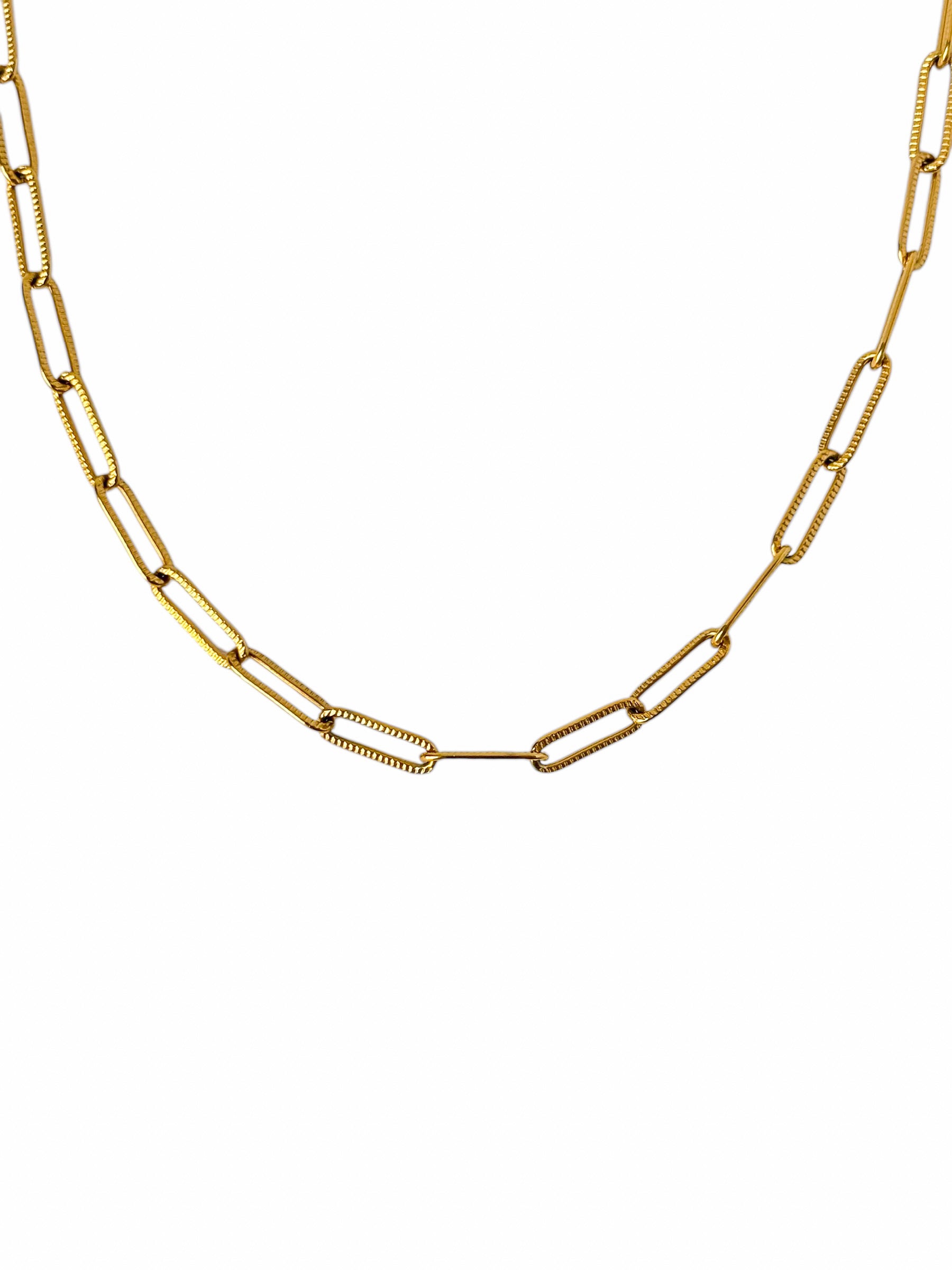 - Chaîne maille rectangle striée 4mm en acier inoxydable & plaque OR 18K