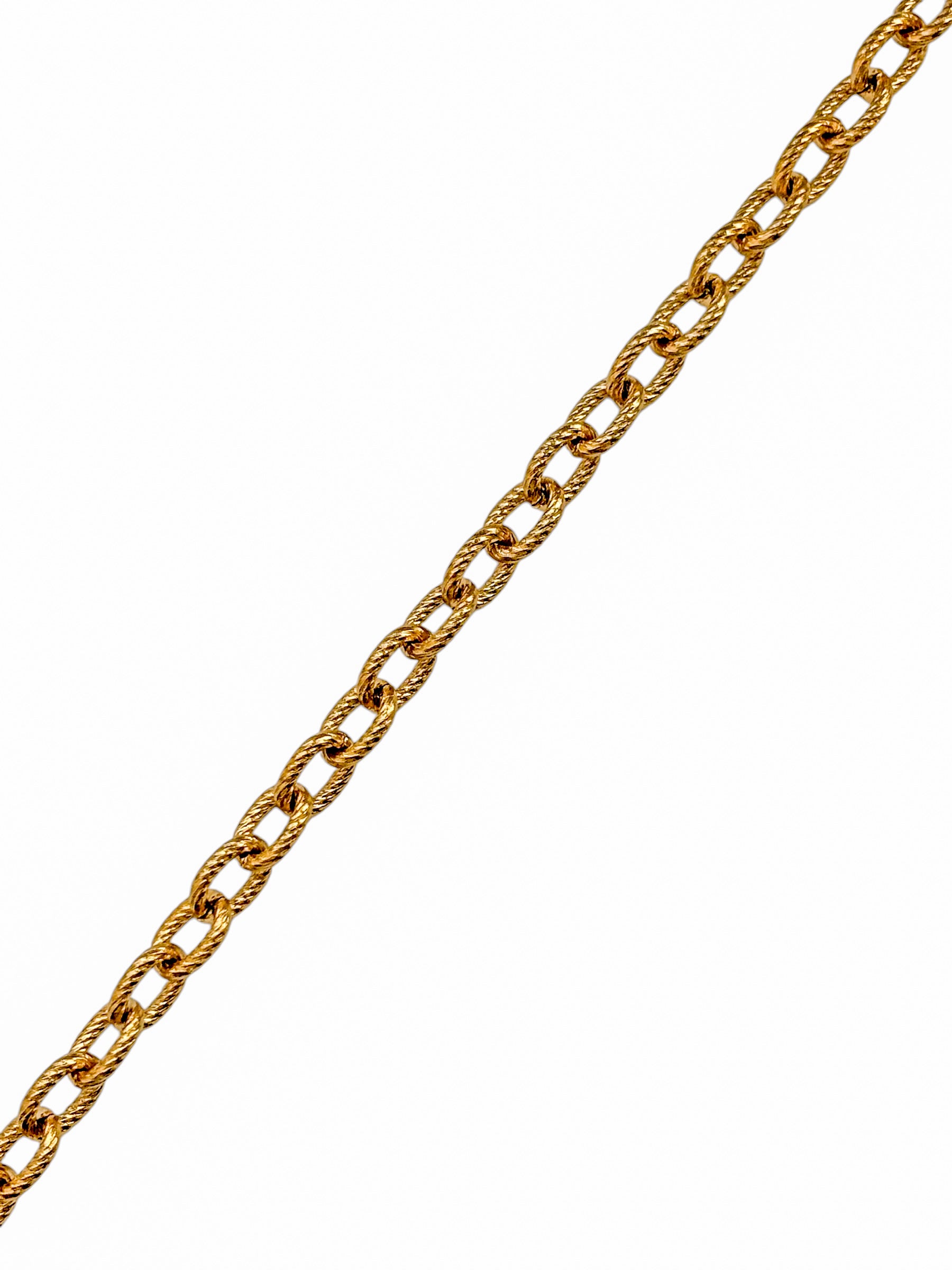 L'acier inoxydable doré à l'or fin, allie robustesse, éclat et durabilité. C'est un matériau que nous avons choisi pour sa capacité à traverser le temps sans perdre de sa beauté, même porté au quotidien.
