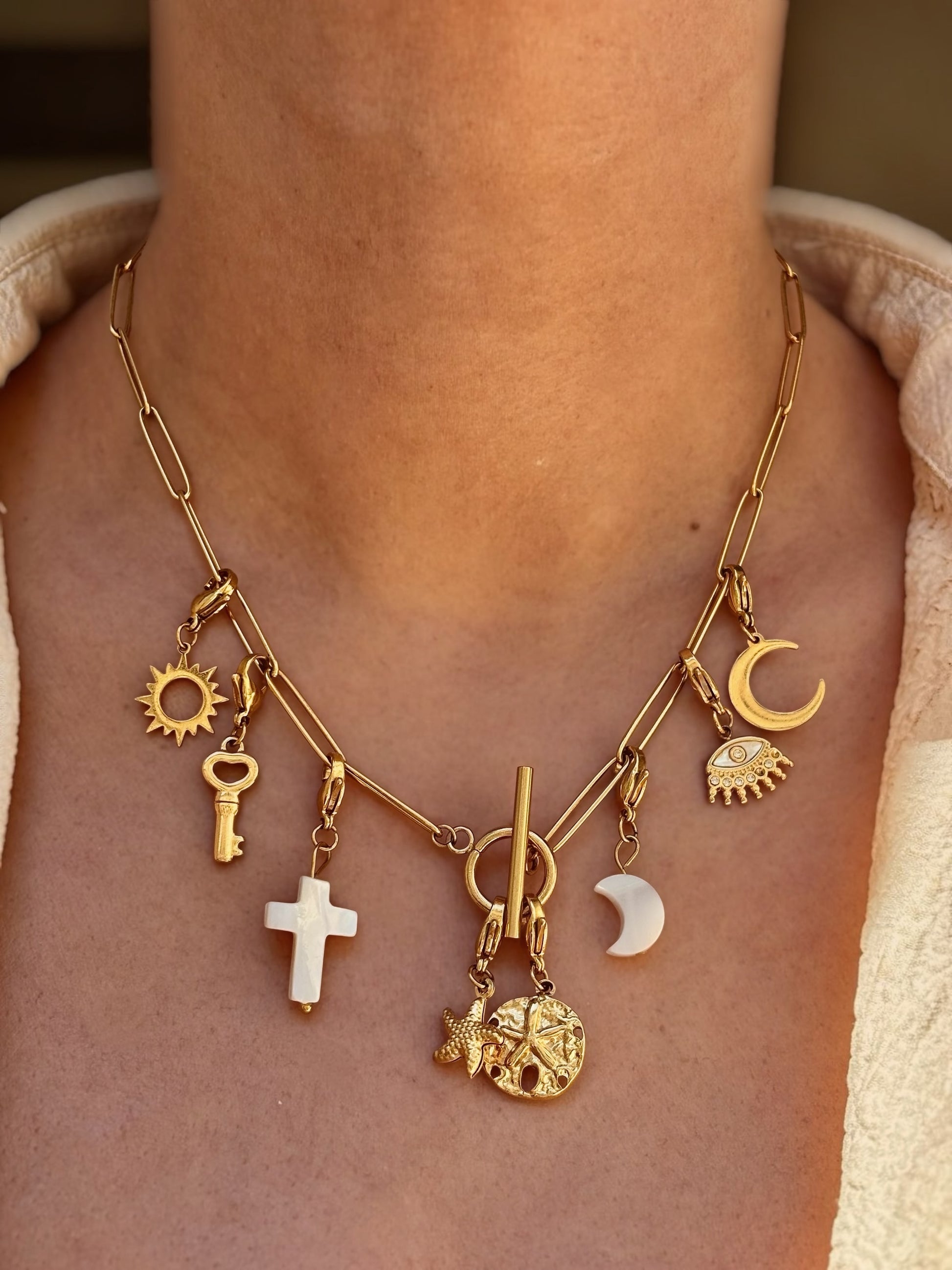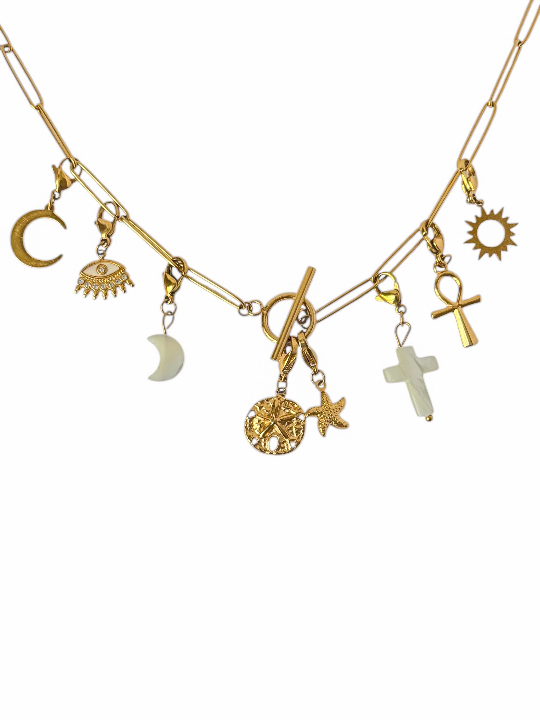 Exprimez votre style avec ce bijou de corps unique : un collier à charms personnalisables et interchangeables, pensé pour évoluer avec vous. Créez, changez, assemblez — chaque détail compte