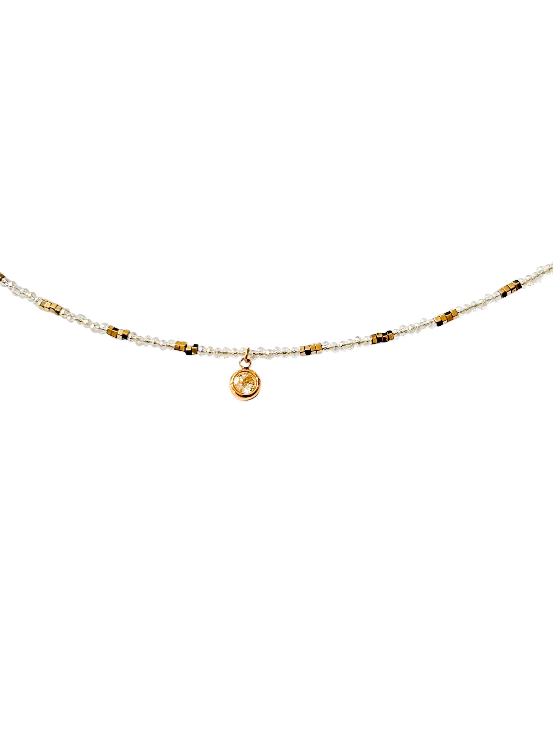 - Collier en perles de verres 2mm, acier inoxydable et plaque or 18K