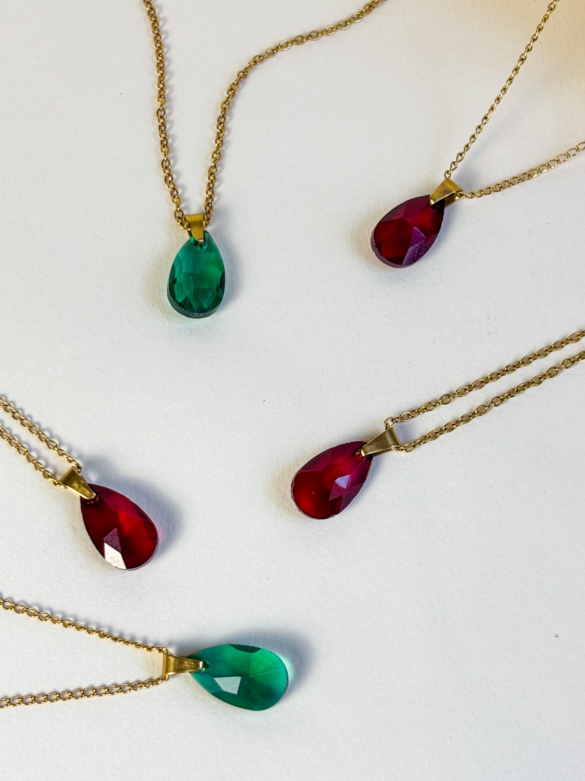 • Chaîne maille 1.5mm & pendentif gouttes en verre 16mm