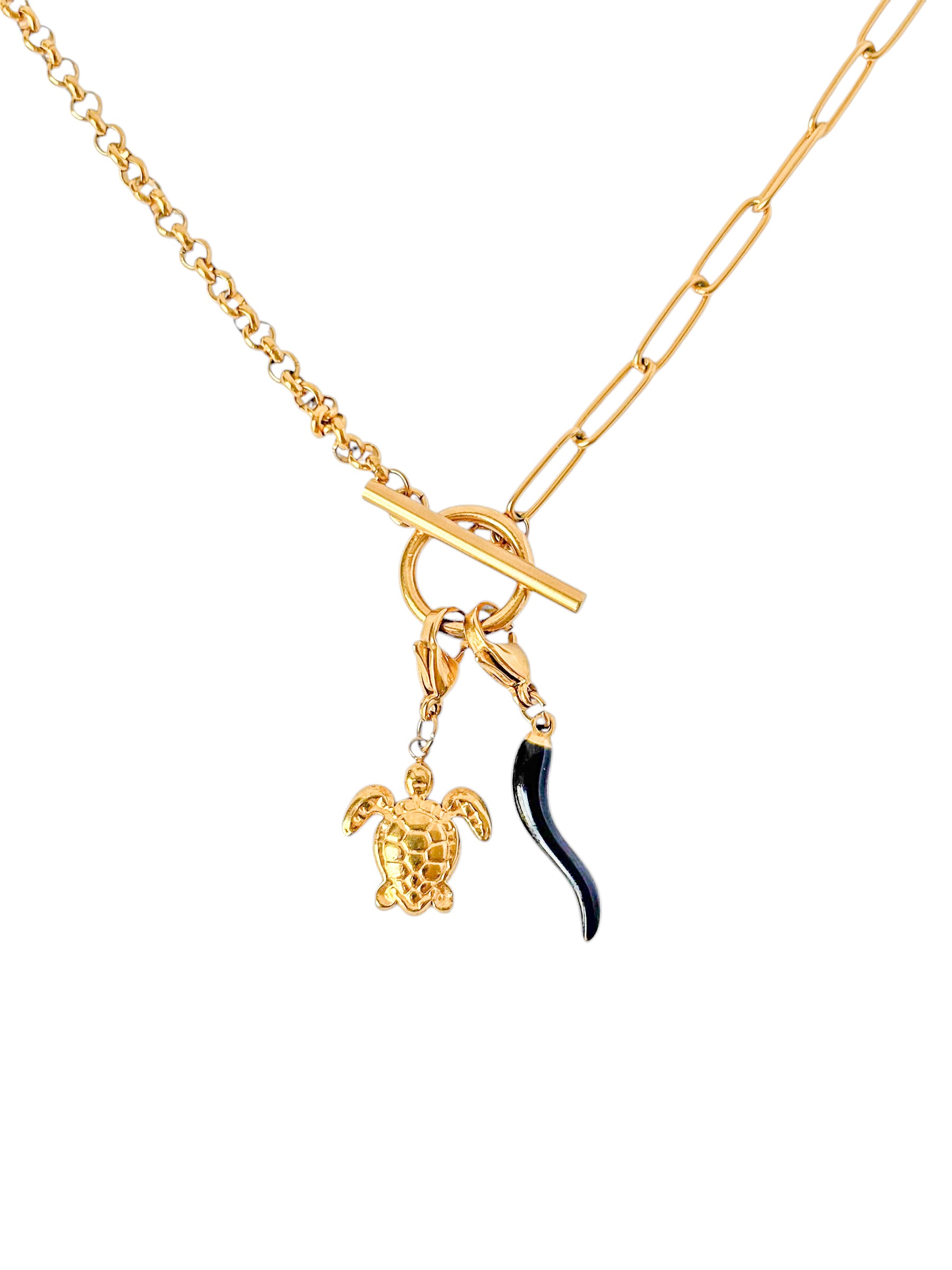 L'acier inoxydable doré à l'or fin, allie robustesse, éclat et durabilité. C'est un matériau que nous avons choisi pour sa capacité à traverser le temps sans perdre de sa beauté, même porté au quotidien.