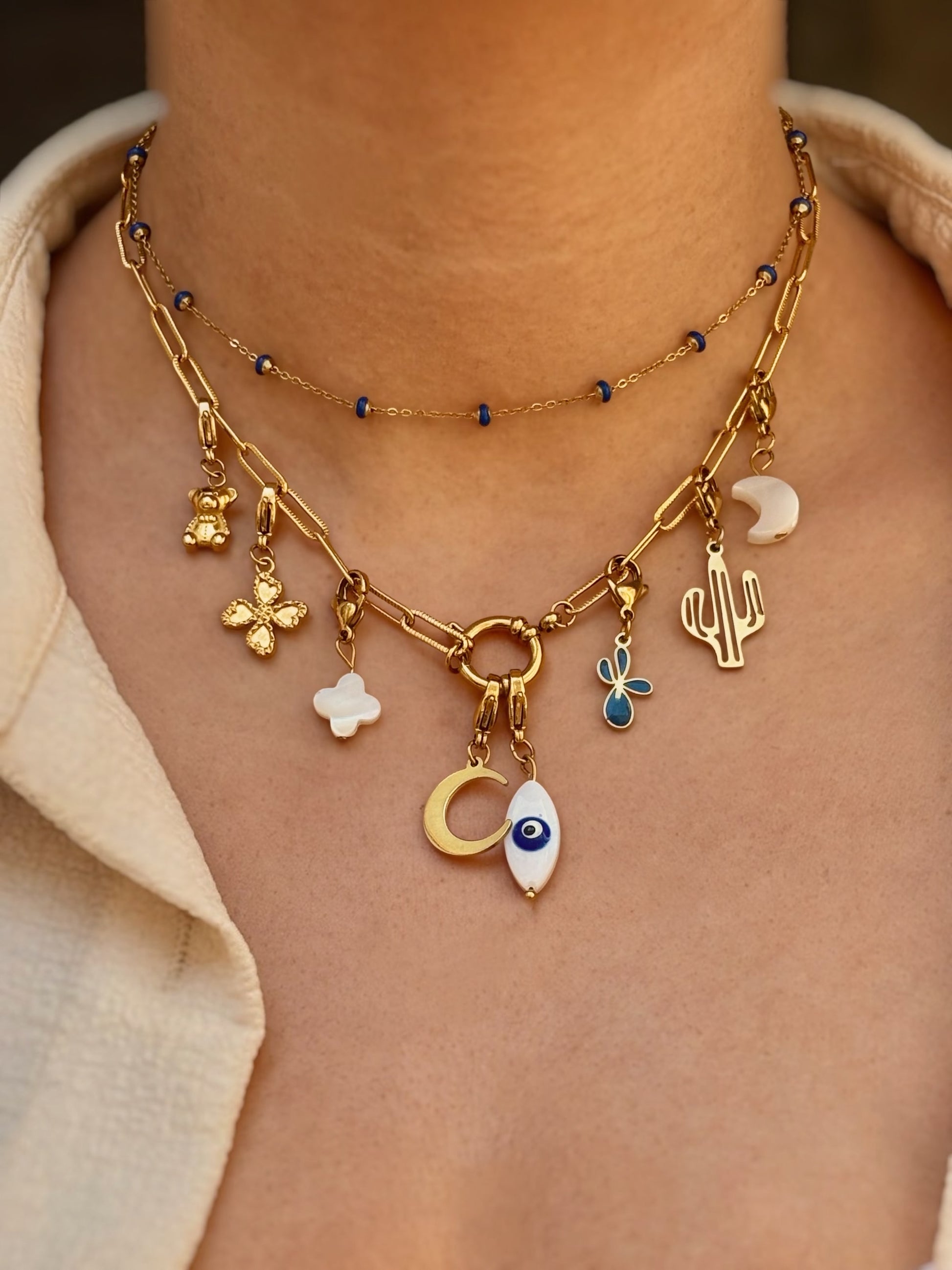 L'acier inoxydable doré à l'or fin, allie robustesse, éclat et durabilité. C'est un matériau que nous avons choisi pour sa capacité à traverser le temps sans perdre de sa beauté, même porté au quotidien.