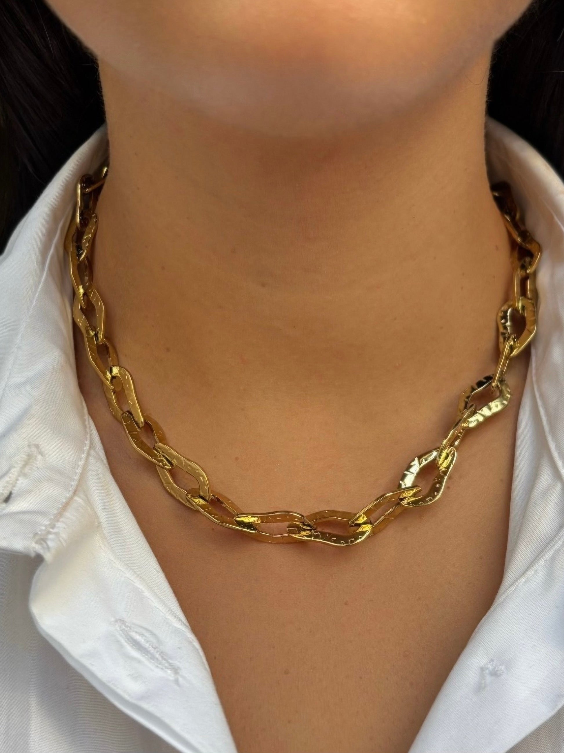 Le collier tendance Tamara doré, chaîne maillons ovales 14mm en acier Inoxydable & Doré OR fin 18K